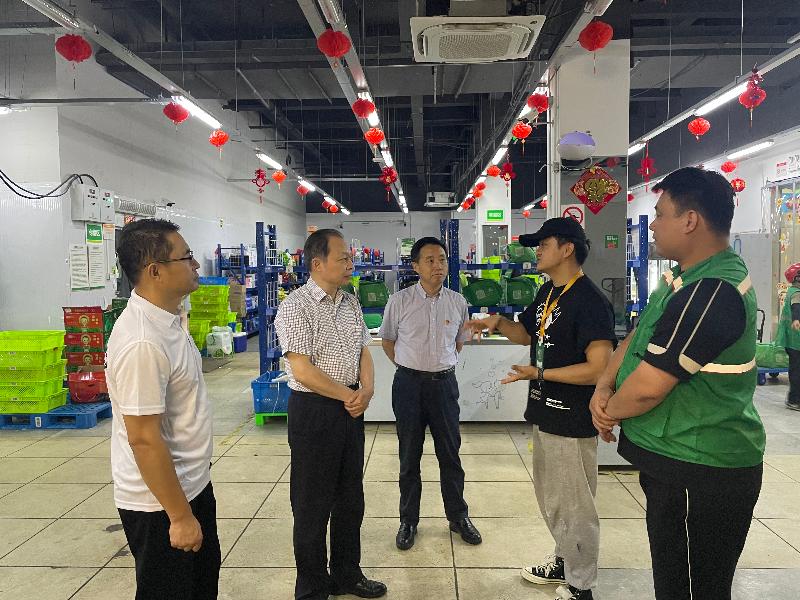 活動現場,慰問組一行為騎手們送上花露水、清涼油、毛巾、沐浴露、洗衣液等清涼物資,向在場騎手表示慰問,對他們的辛勤付出和為城市發展所做的貢獻表示感謝,希望騎手們在戰高溫、斗酷暑,甘當城市“送貨員”的同時,提高安全健康意識,做好自我防護措施。慰問組還參觀了叮咚買菜外賣配送點水產海鮮、冷藏食品等生鮮倉儲、配送情況,倡導外賣配送企業積極行動,學習黨的政策,做好騎手黨員隊伍建設,維系好情感、保護好安全、發揮好作用,號召外賣配送騎手積極參與社會治理,為建設美麗園區貢獻力量。