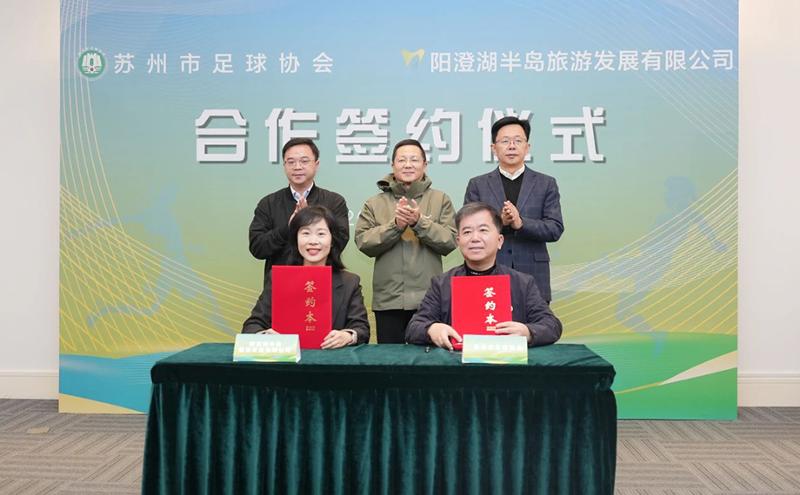 1月22日,蘇州市足球協(xié)會與蘇州陽澄湖半島旅游發(fā)展有限公司合作簽約儀式在蘇州陽澄湖半島旅游度假區(qū)舉行,蘇州市足協(xié)活動中心順利落戶半島。蘇州市體育局、蘇州工業(yè)園區(qū)宣傳和統(tǒng)戰(zhàn)部、度假區(qū)黨工委管委會、蘇州市足協(xié)、半島公司等單位和企業(yè)相關(guān)負責(zé)人參加活動。