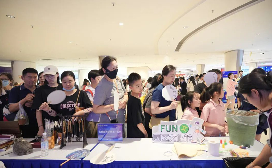 活動現(xiàn)場,園區(qū)公共文化中心黨員志愿者還展示了江蘇省級非遺項目“蘇州湖筆制作技藝”,包含水盆、成型、裝套、擇筆、刻字等制作工序。同時邀請市民體驗“漂漆扇”,以漆為筆,以扇為紙,運水作畫,吸引不少市民參與。