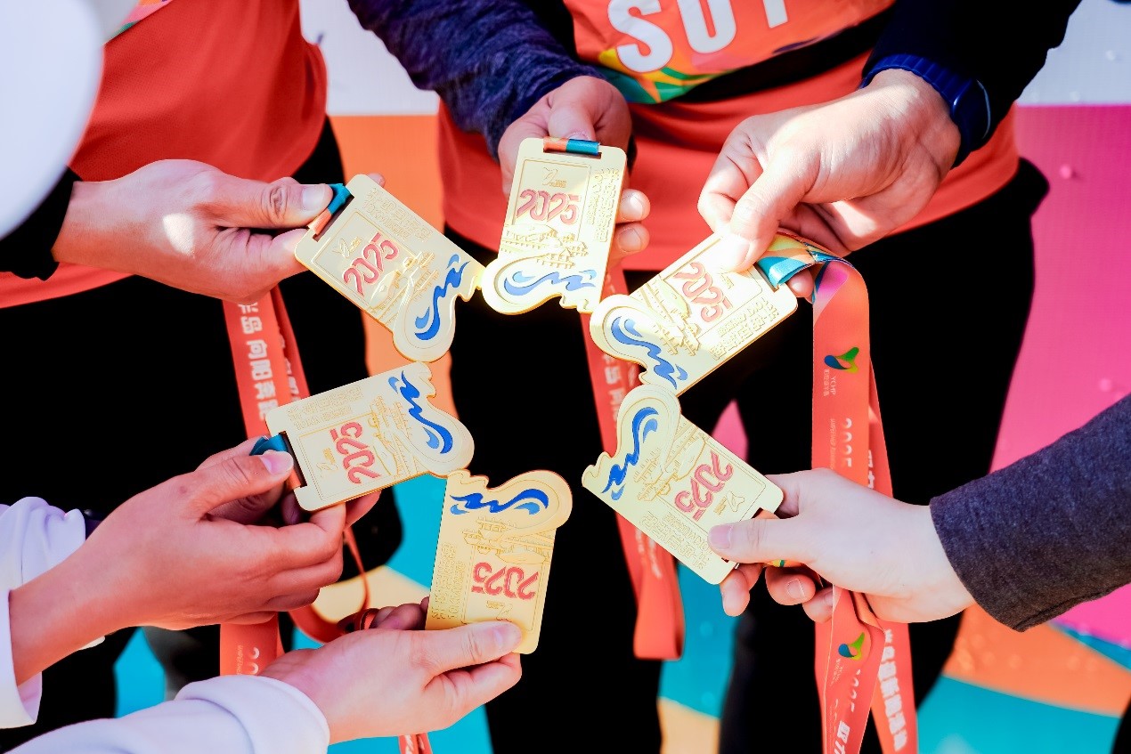 值得一提的是,本次賽事獎(jiǎng)牌為全新設(shè)計(jì)定制,競(jìng)速跑獎(jiǎng)牌上有環(huán)湖棧道、水澤驛站圖案;接力跑獎(jiǎng)牌則將半島樂跑元素、特色水域、地標(biāo)建筑相融合,6塊獎(jiǎng)牌拼接時(shí)將呈現(xiàn)出一個(gè)整體的鏤空六芒星圖案,彰顯半島藝術(shù)特色,體現(xiàn)出“半島?企業(yè)?家”的融合共進(jìn)。